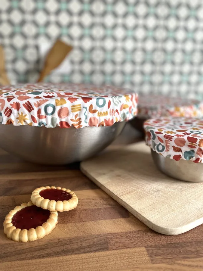 Une jolie charlotte pour plat permettant de remplacer le papier aluminium ou le film étirable et de conserver vos aliments à l’abri.