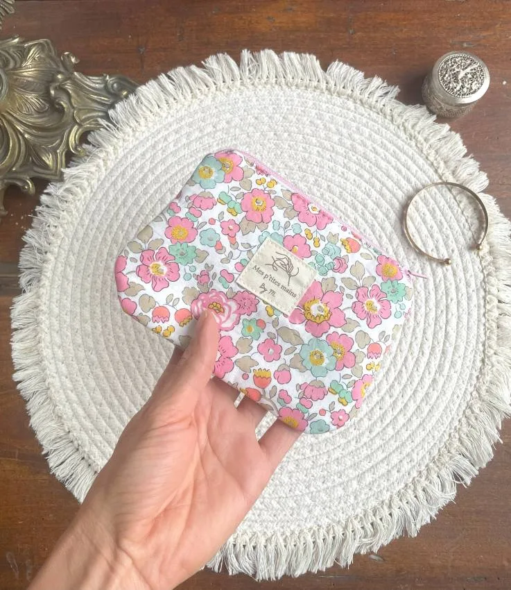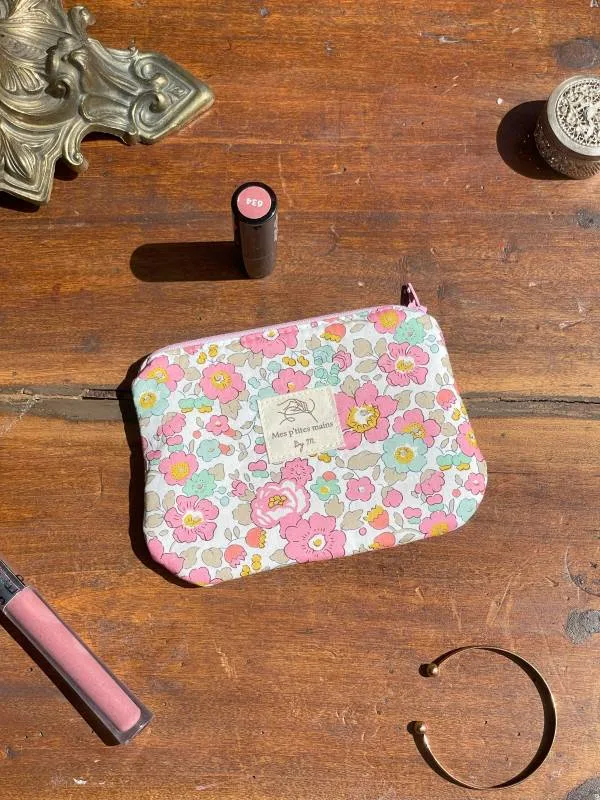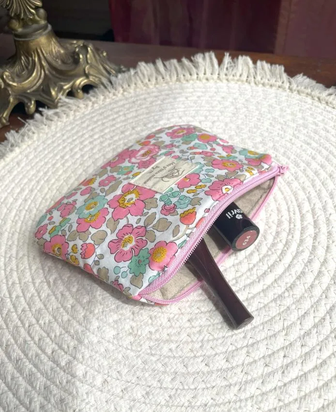 Découvrez cette jolie pochette en tissu Liberty original Betsy Cupcake. Un coton Oeko tex d’une grande finesse au motif fleuri dans les tons de roses.