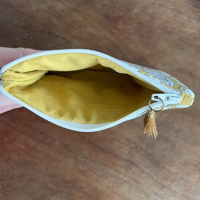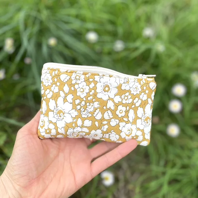 Découvrez ce porte monnaie tissu Liberty cousu dans ce magnifique Betsy Boo moutarde exclusif!