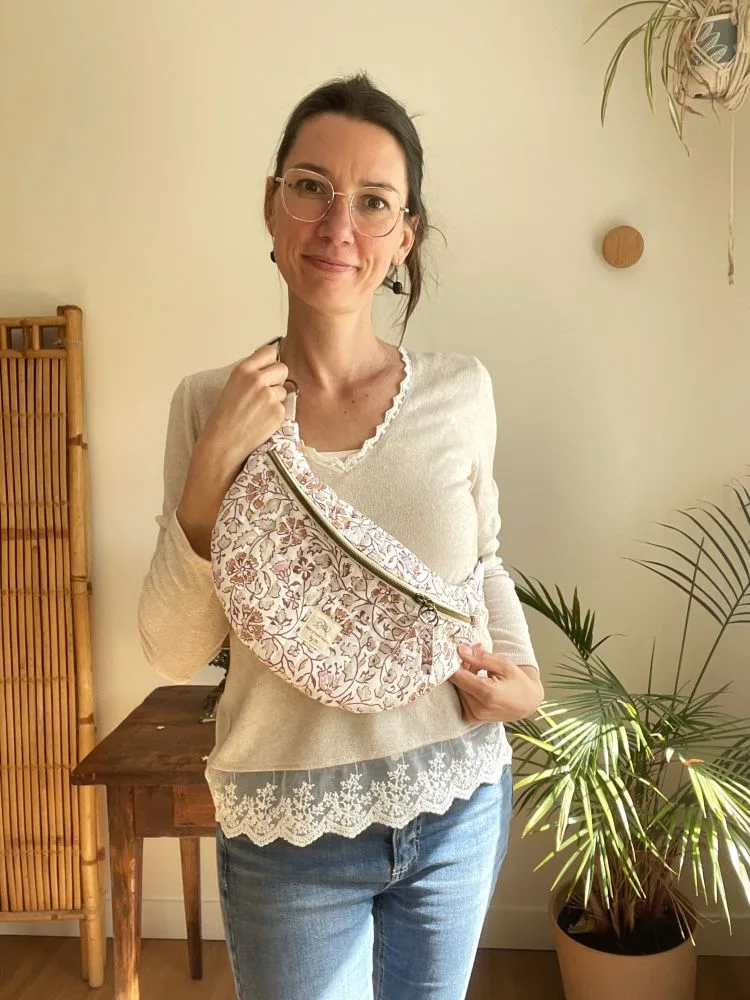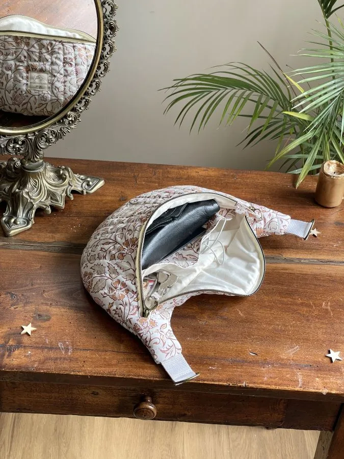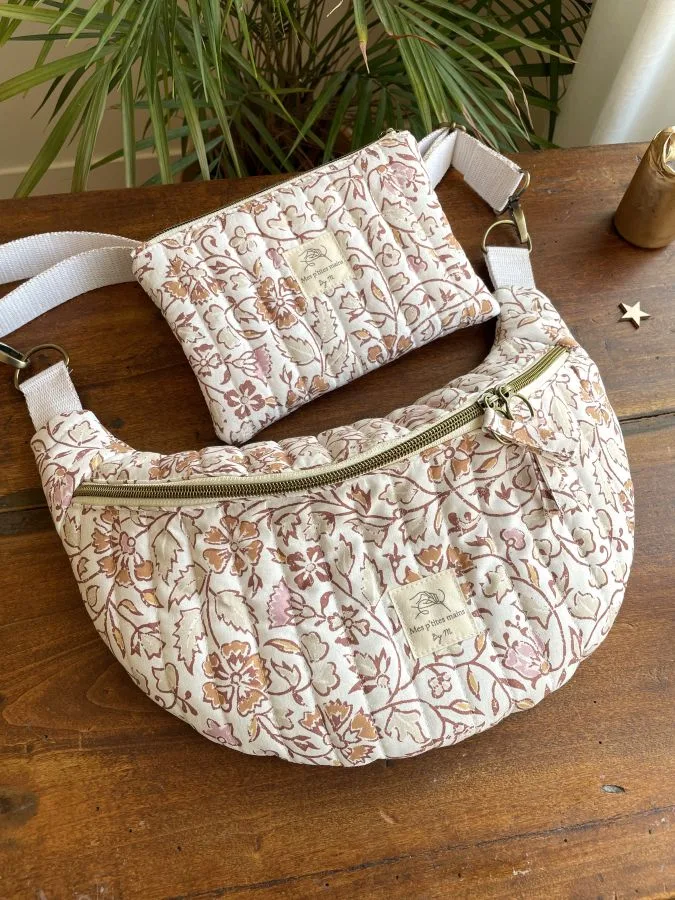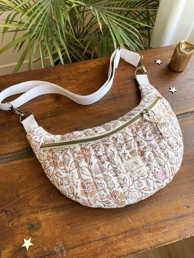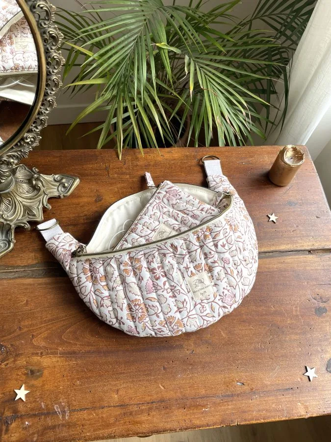Ce joli sac banane matelassé fleuri indien rose est le compagnon idéal pour la saison printemps/été ! Fini les mains encombrées et le sac qui glisse, cette banane offre le confort de garder vos essentiels près de vous tout en gardant les mains libres, avec le style d’une pièce unique cousue main.