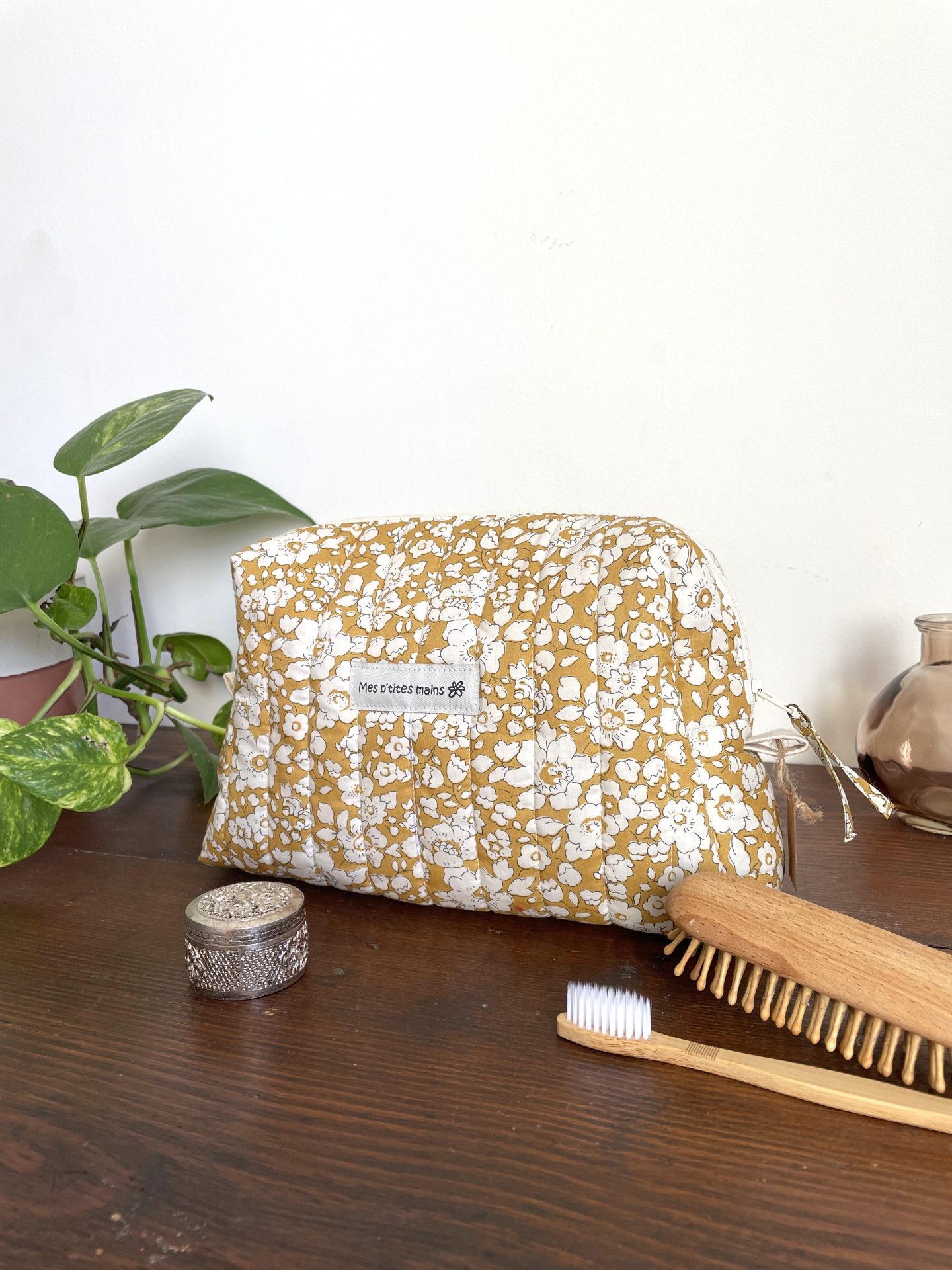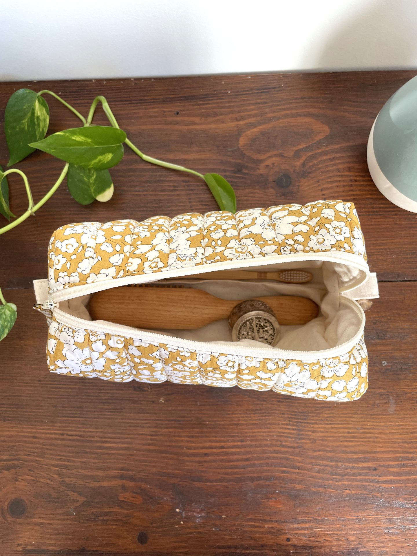 Trousse de toilette Liberty Betsy Boo moutarde matelassée