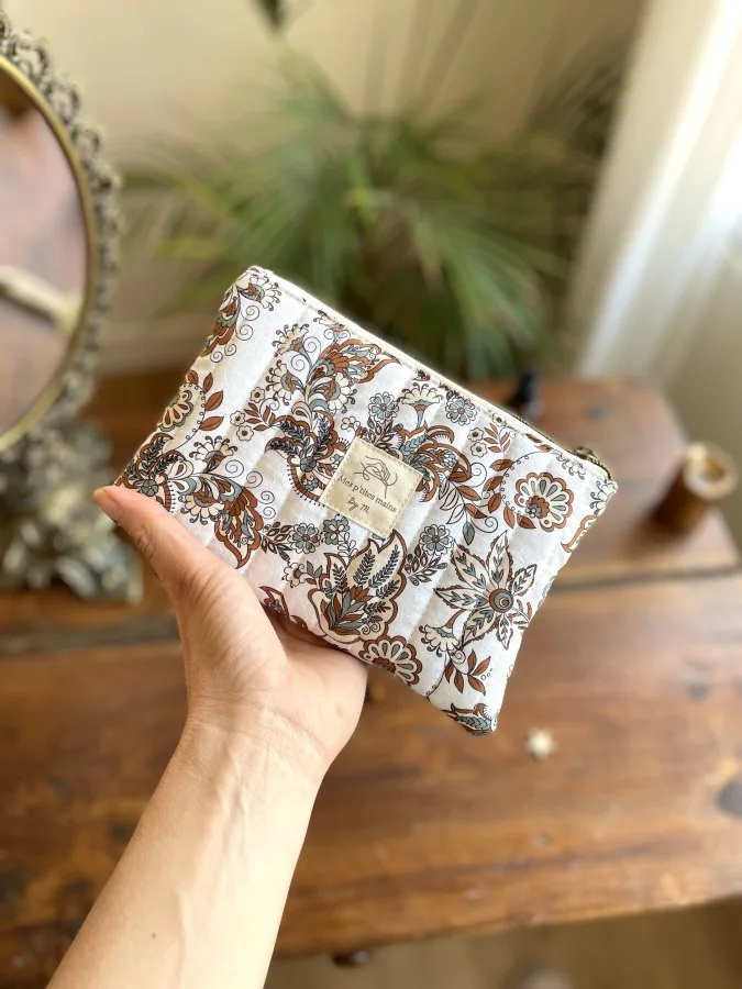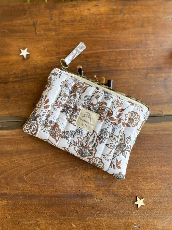 Découvrez cette jolie trousse plate matelassée au motif Paisley marron pour organiser au mieux vos affaires!