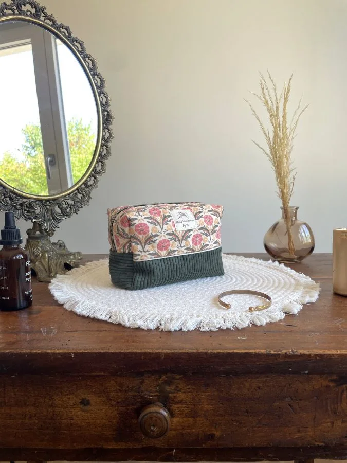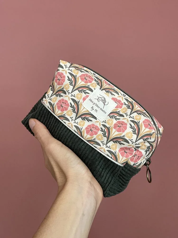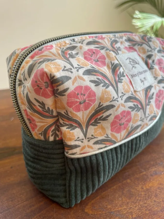 Découvrez cette jolie trousse beauté en velours côtelé et coton aux couleurs de l’été indien. Cette petite trousse faite main est à la fois compacte et spacieuse et peut servir de trousse à maquillage mais également de trousse à crayons, à accessoires, etc.