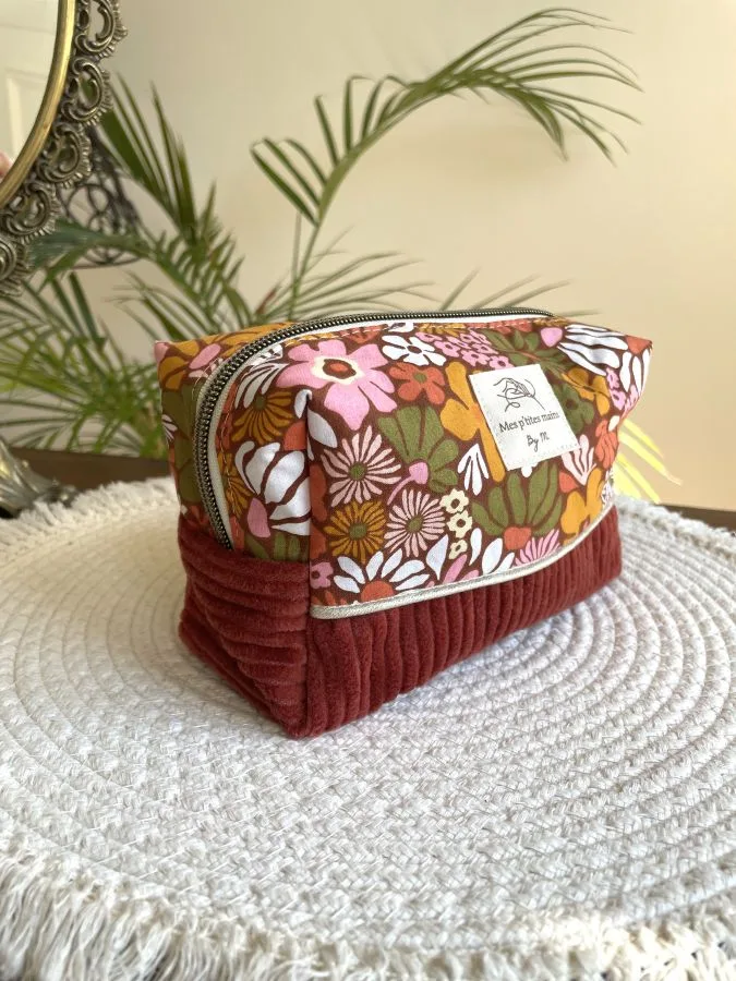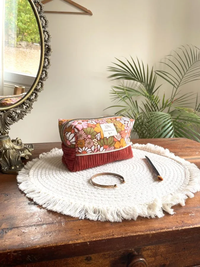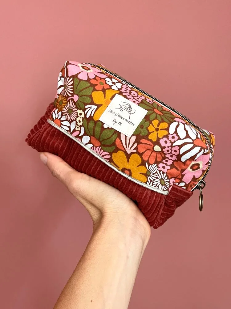 Découvrez cette jolie trousse en velours côtelé et coton aux couleurs de l’été indien. Cette petite trousse faite main est à la fois compacte et spacieuse et peut servir de trousse à maquillage mais également de trousse à crayons, à accessoires, etc.
