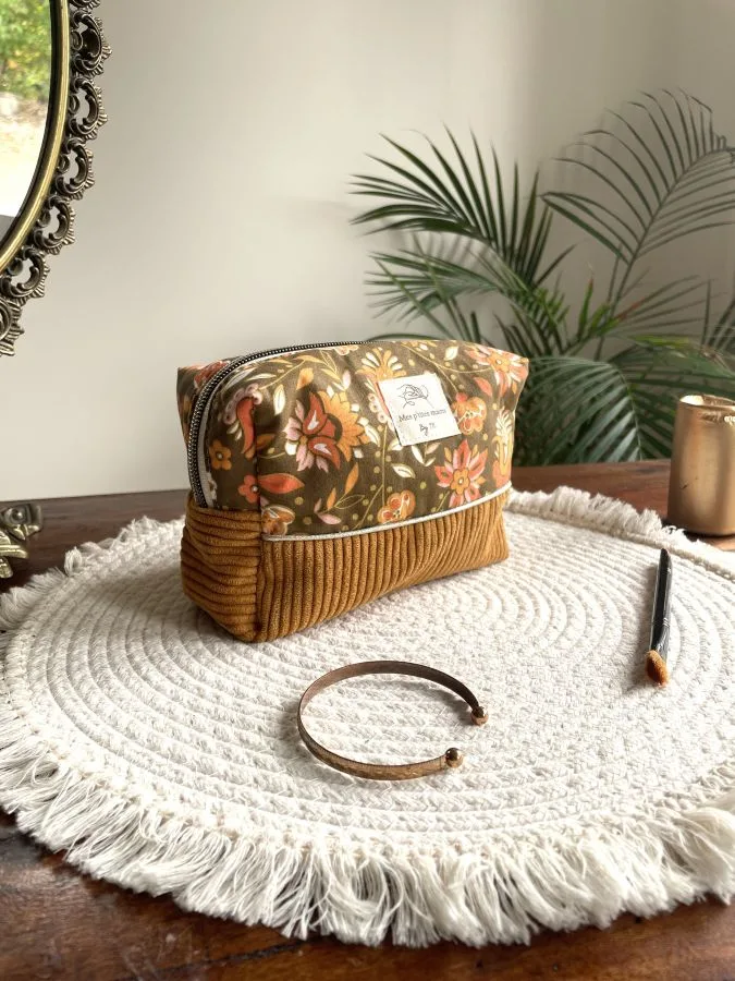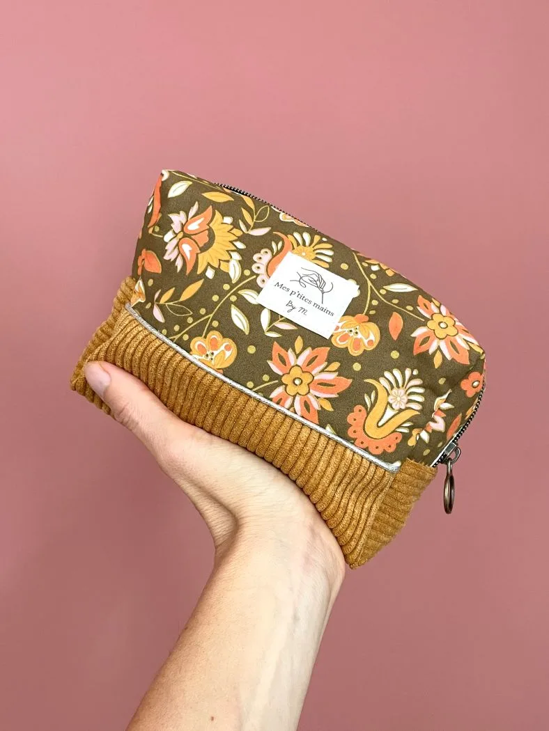 Découvrez cette jolie trousse en velours côtelé et coton aux couleurs de l’été indien. Cette petite trousse faite main est à la fois compacte et spacieuse et peut servir de trousse à maquillage mais également de trousse à crayons, à accessoires, etc.
